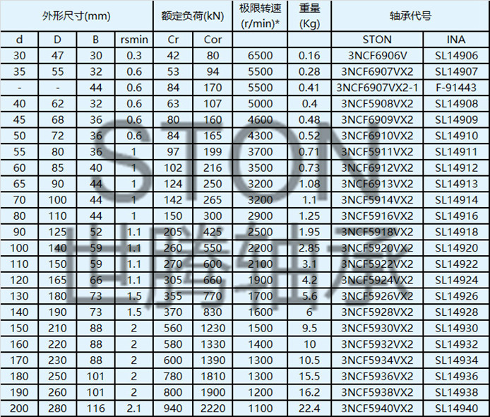 注: *表列為油潤滑數(shù)值,脂潤滑為表列數(shù)值50%。